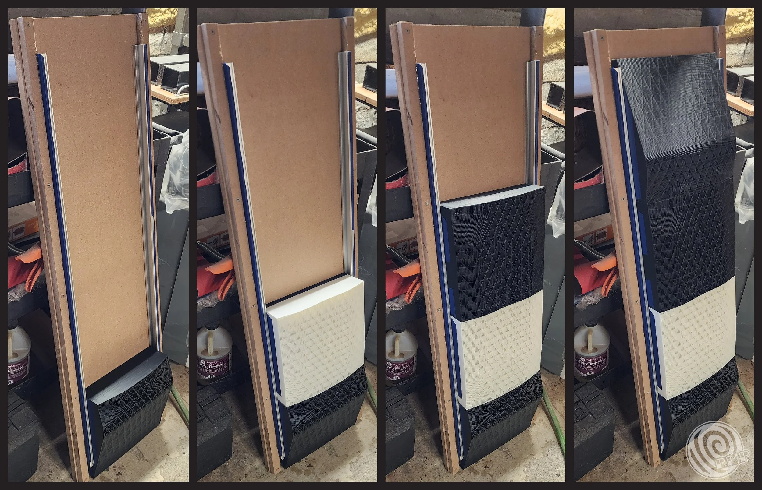 "I was able to put the minigrant funds towards the purchase of an Ender S1 Plus 3D printer, in order to print the RMP original designed modular skateboard mold (V1) as planned. This allows us to produce new sections for the top/bottom molds that are used to press maple veneer into high quality skateboard decks, both street (and now) longboards. Although the refined board designs for the new shape of longboard are still under development, RMP will be doing some raffles towards the end of the year at some craft/art shows featuring the new pressings. More custom geometry combinations for skateboard decks to come!" - Michael Anfuso of Rare Minded Productions